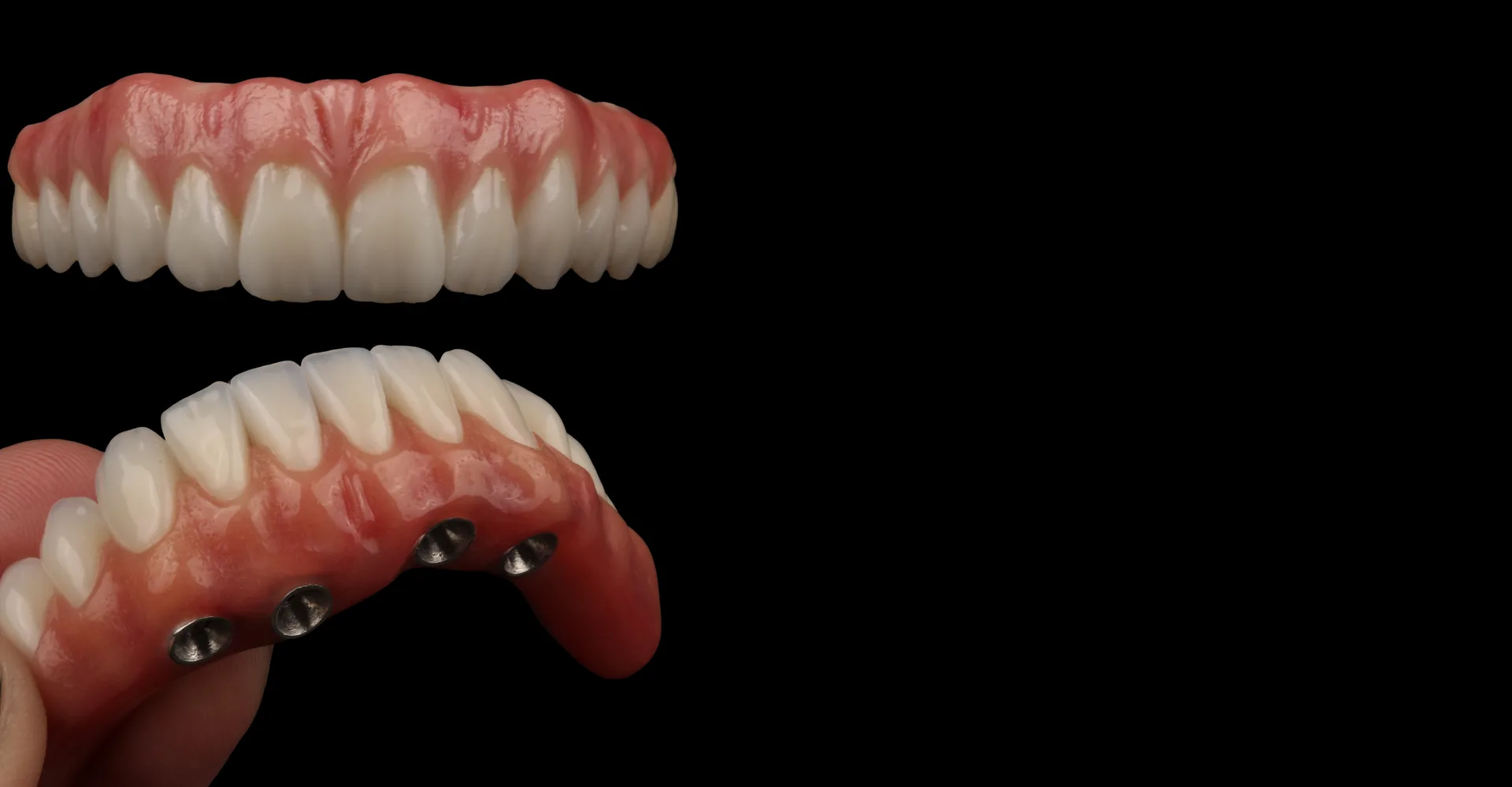 Feito, inicialmente, uma estrutura de metal que receberá o revestimento de porcelana ou zircônia. Garante um aspecto mais fino e sofisticado, sendo estes materiais comparados a delicadeza e brilho de um dente natural, que torna o implante quase imperceptível.